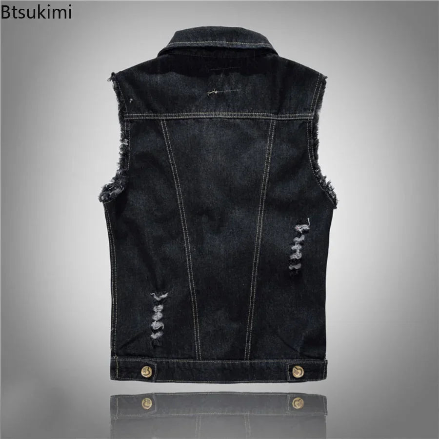 2025 Men's Fashion Jeans Sleeveless Jacket Vest Male Black Blue Denim Jeans Vest Man Cowboy Outdoors Waistcoat Mens Jacket Vest