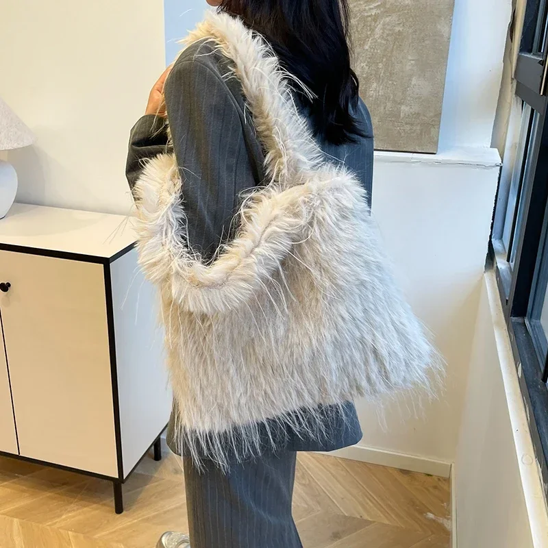 2025 NEW Wool Women's Plush Shoulder Bags Y2k Hot Faux Fur Lady Bag Large Capacity Fashion Female Furry Purse Tote Handbags