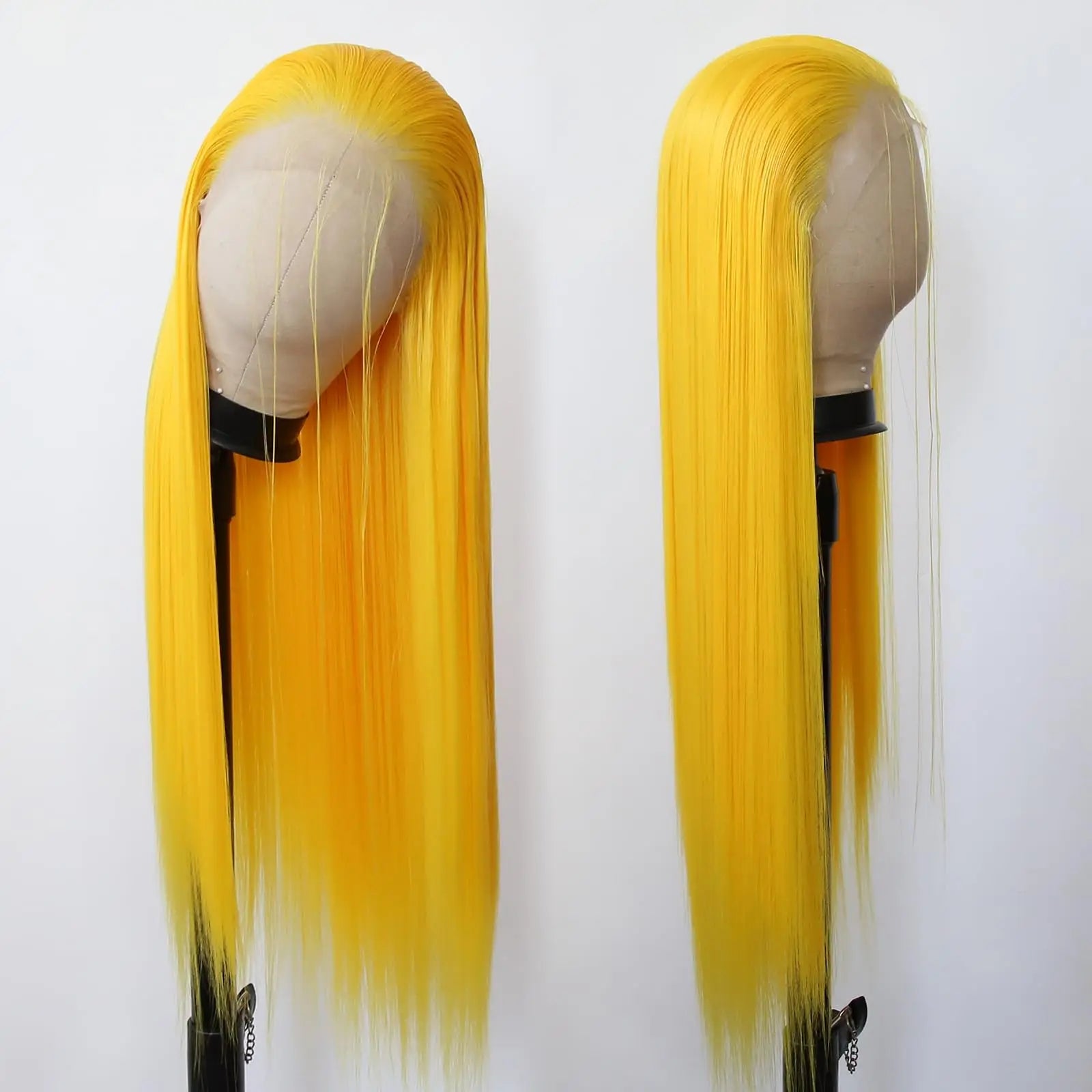 250Density 32inch lace front wig 13x4 Yellow colored human hair wig Brazilian PrePlucked Hair straight human hair wigs For Women