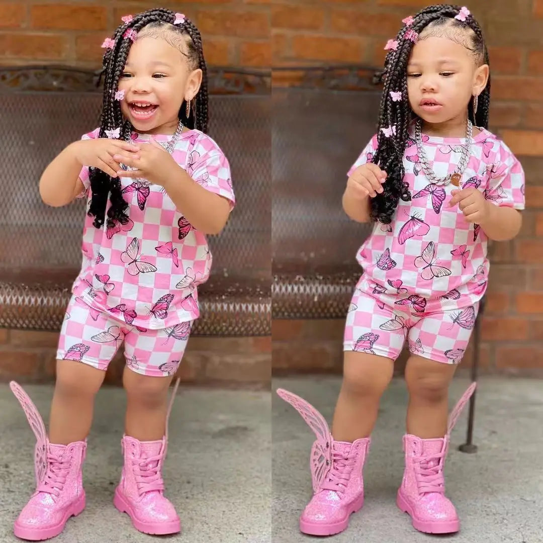 Baby Girl Summer Clothing Sets Short Sleeve Tops+Rainbow Color Shorts Kids Casual Clothes Children's Girls 2pcs Outfits 8Y
