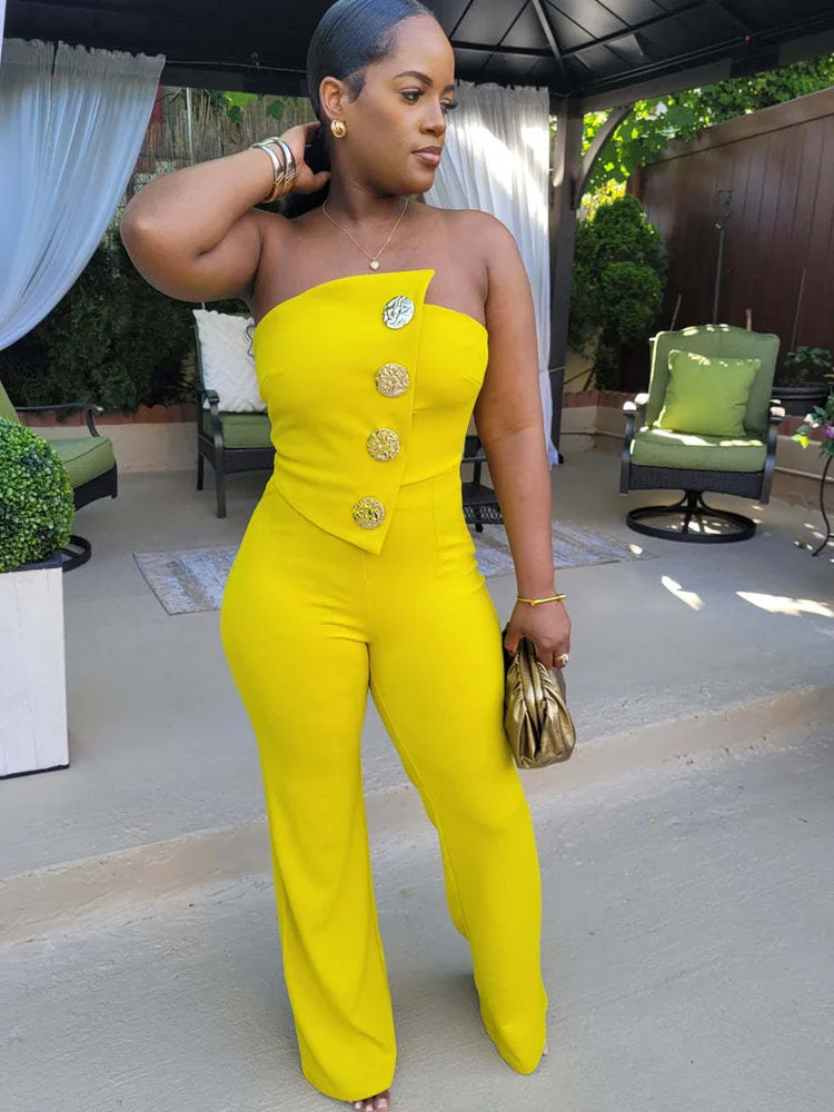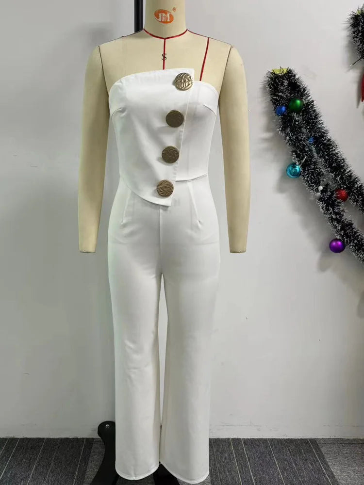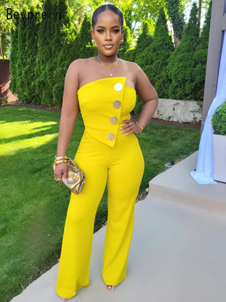 Beyprern Elegant Off Shoulder Button Details Irregular Girl Jumpsuits Women's Fitted Overalls Outfits Night Clubwear Rave Wear