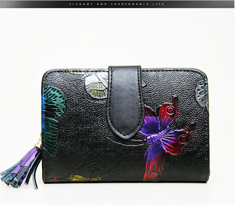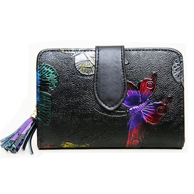 Floral Purse Short Women 2025 New Small Wallet Women Cards and Coins Cow Leather Purse Bag