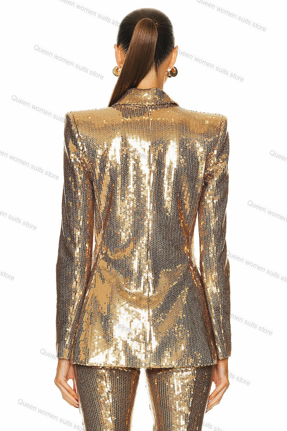 Golden Sequins Women Suit Pants Set 2 Piece Blazer+Trouser Luxury Wedding Tuxedo Formal Office Lady Jacket Customized Size