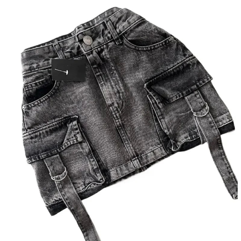 Harajuku Multiple Pockets Denim Plaid Skirt Vintage Goth Black Y2k Mini Skir Fashion Womens Casual Versatile Sexy Streetwear