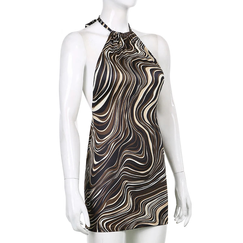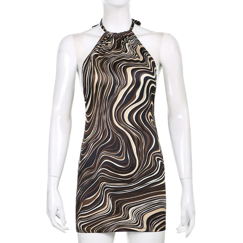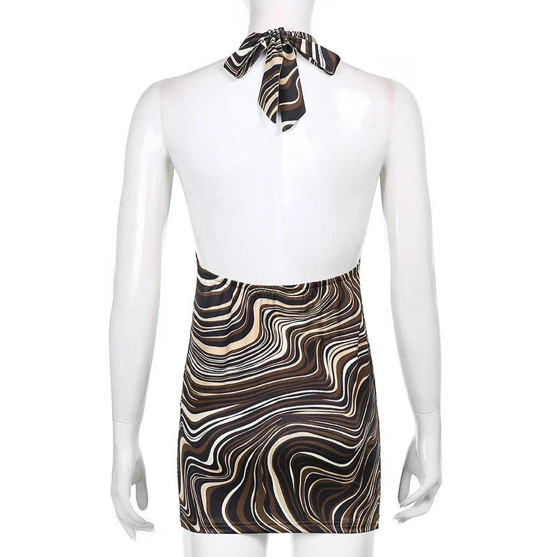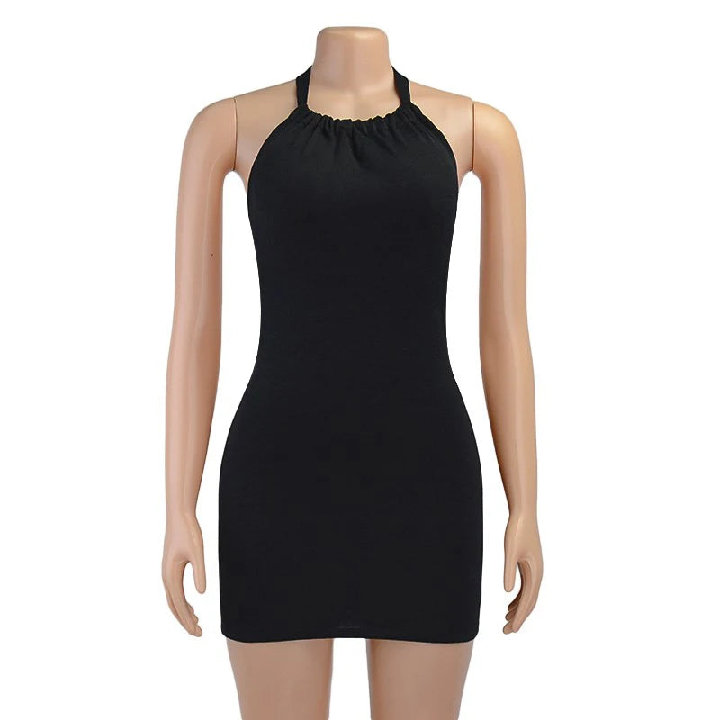 High Quality Sexy Hollow Backless short Dresses Women Summer Streetwear Bodycon Mini Dress Halter Sleeveless Beach Party Dress