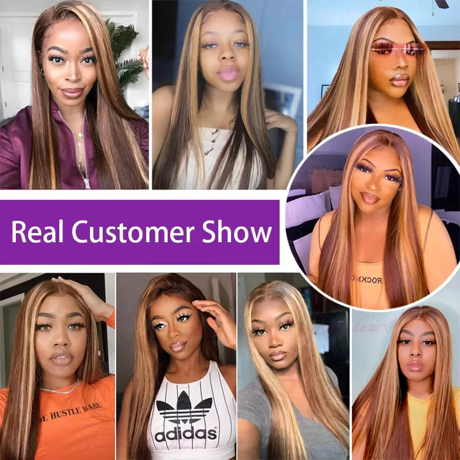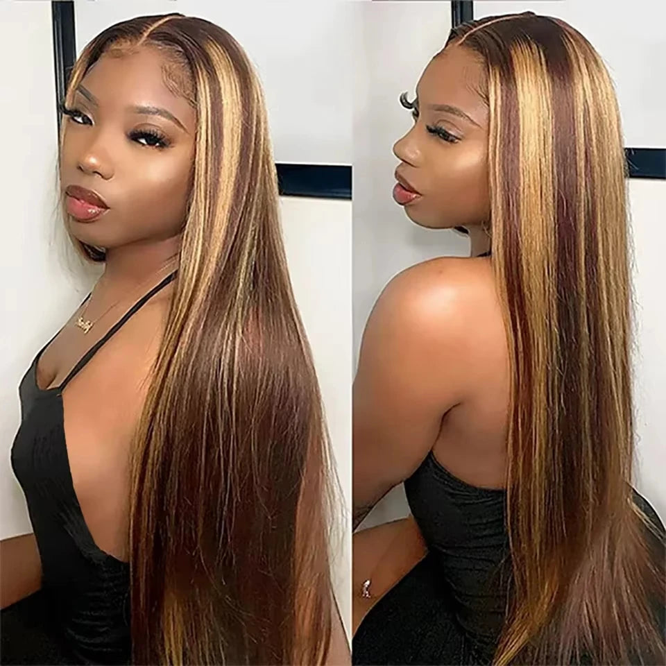 Highlight Ombre 13x6 hd lace frontal wig human hair for women 30 inch lace front colored 13x4 straight wigs human hair on sale
