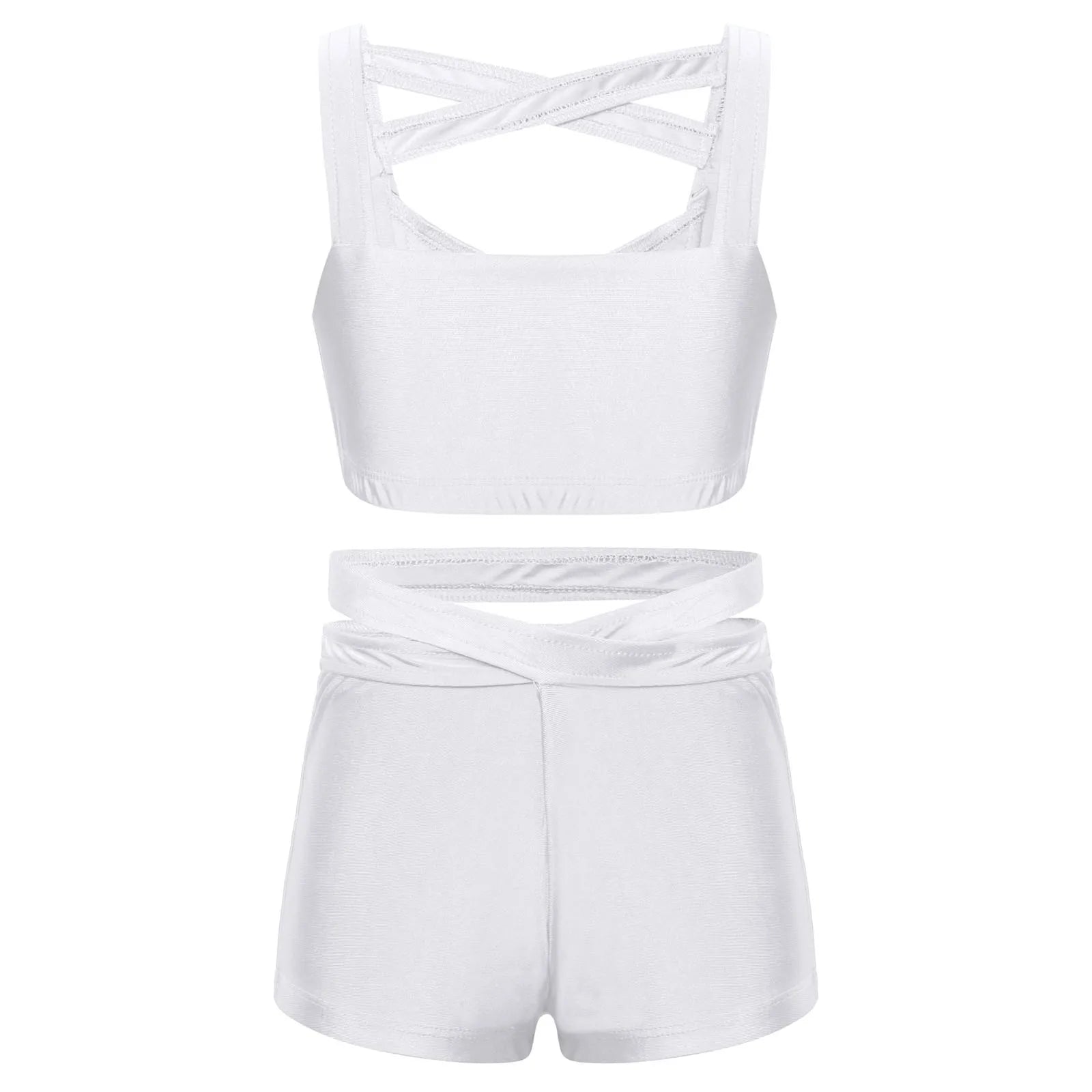 Kids Girls Stretchy Strappy Ballet Dance Sets Sleeveless Gymnastics Workout Crop Top with Shorts Set Girls Sports Dance Wear