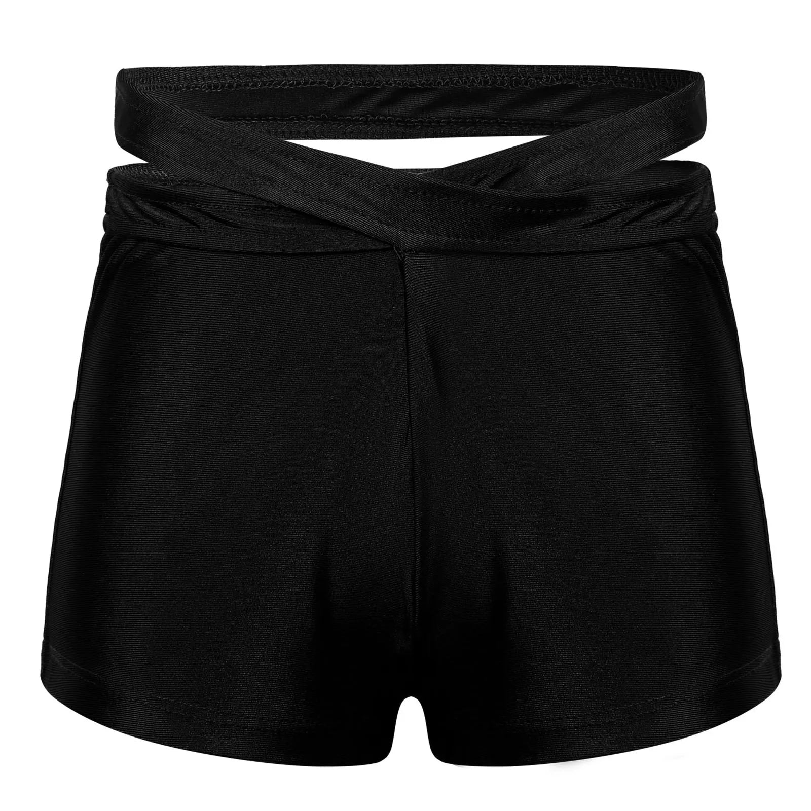 Matching shorts with elastic waistband, strap cross at waist for decoration.