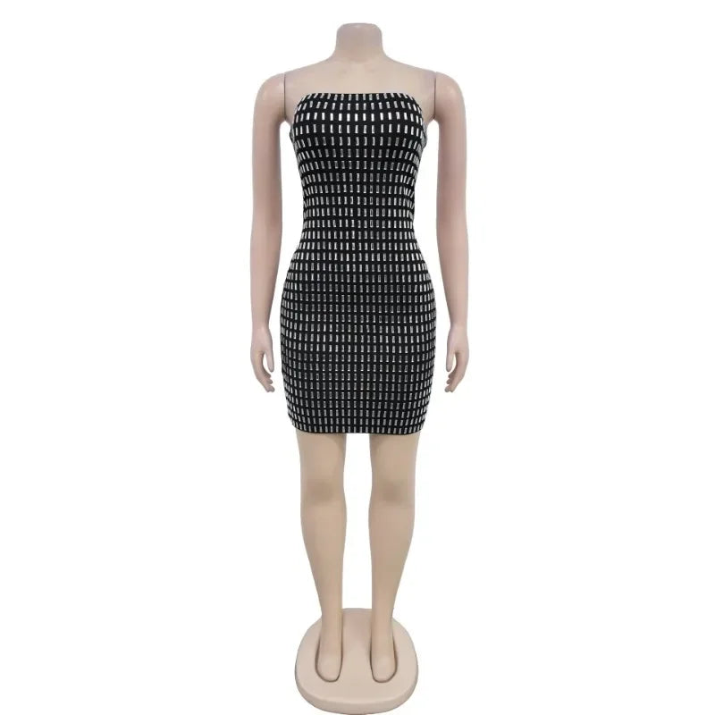 Leosoxs Hot Diamonds Patchwork Mini Dresses for Women Off the Shoulder Backless Summer Bodycon Dress Party Evening Vestidos