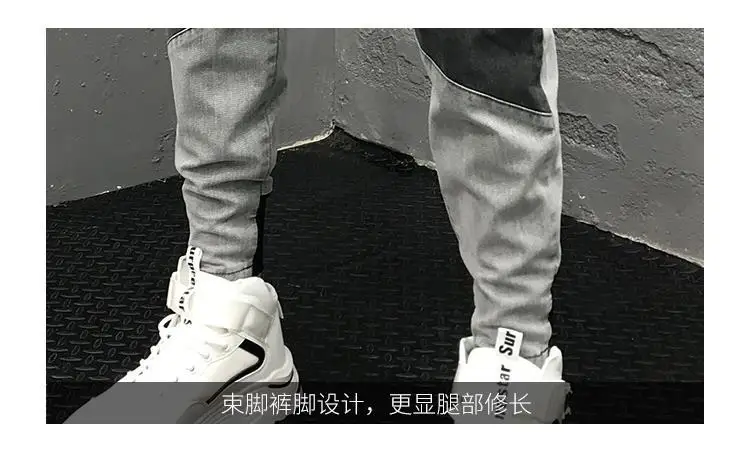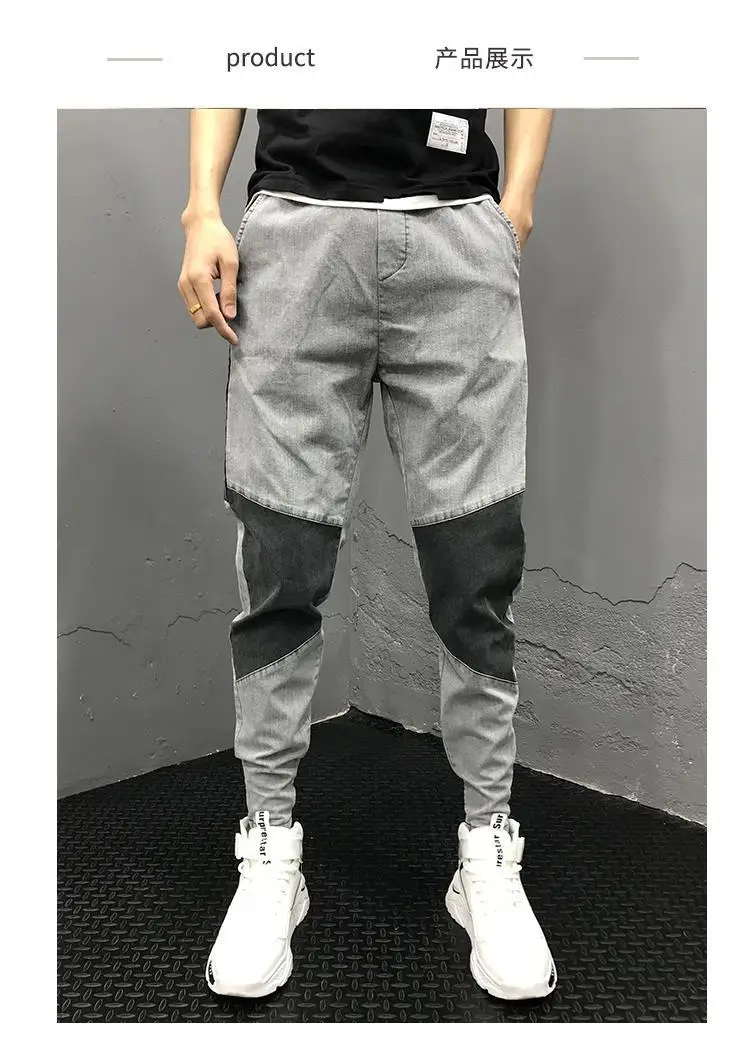 Men's Summer Korean Fashion Vintage Patchwork Stretchy Washed Denim Pants Y2K Casual Streetwear Slim Fit Jeans Pantalones Hombre