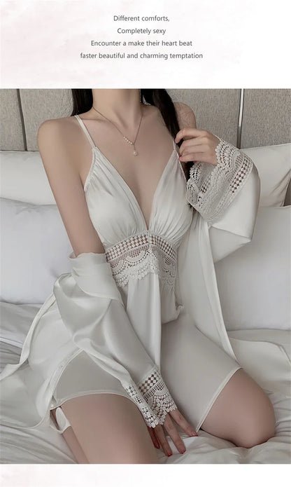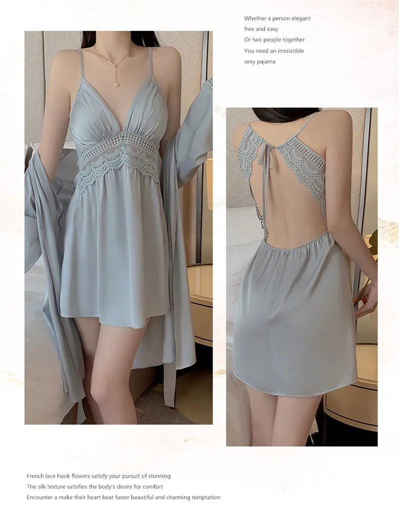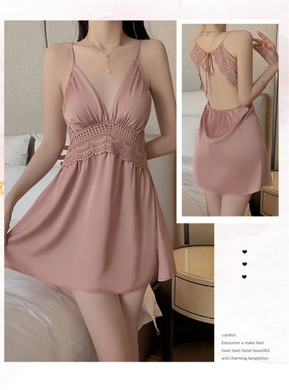 REBEYULI Brand 2025 Vintage Women Nightgown Sets Sexy Lingerie Set Spaghetti Strap Nigh Dress with Bra Cups Women's Nightwear