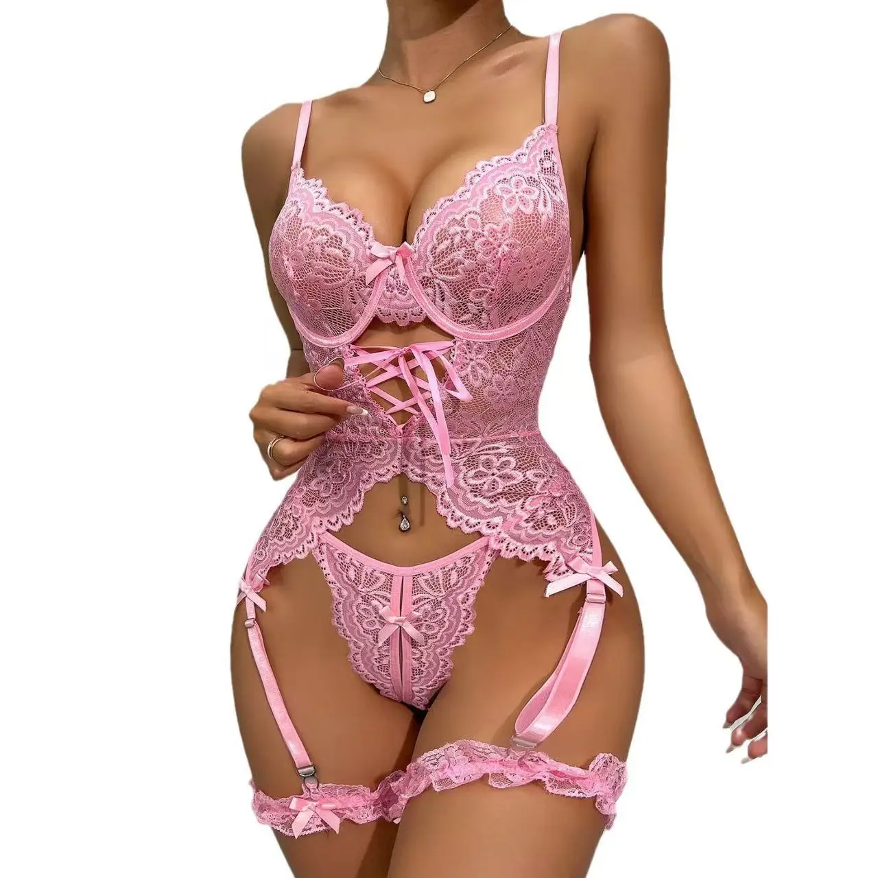 Sexy Adult See Through Corset Woman 2025 Lace Sexy Lingerie Set Porno Women Underwear Bra Set And Garter Erotic Lingerie Thongs