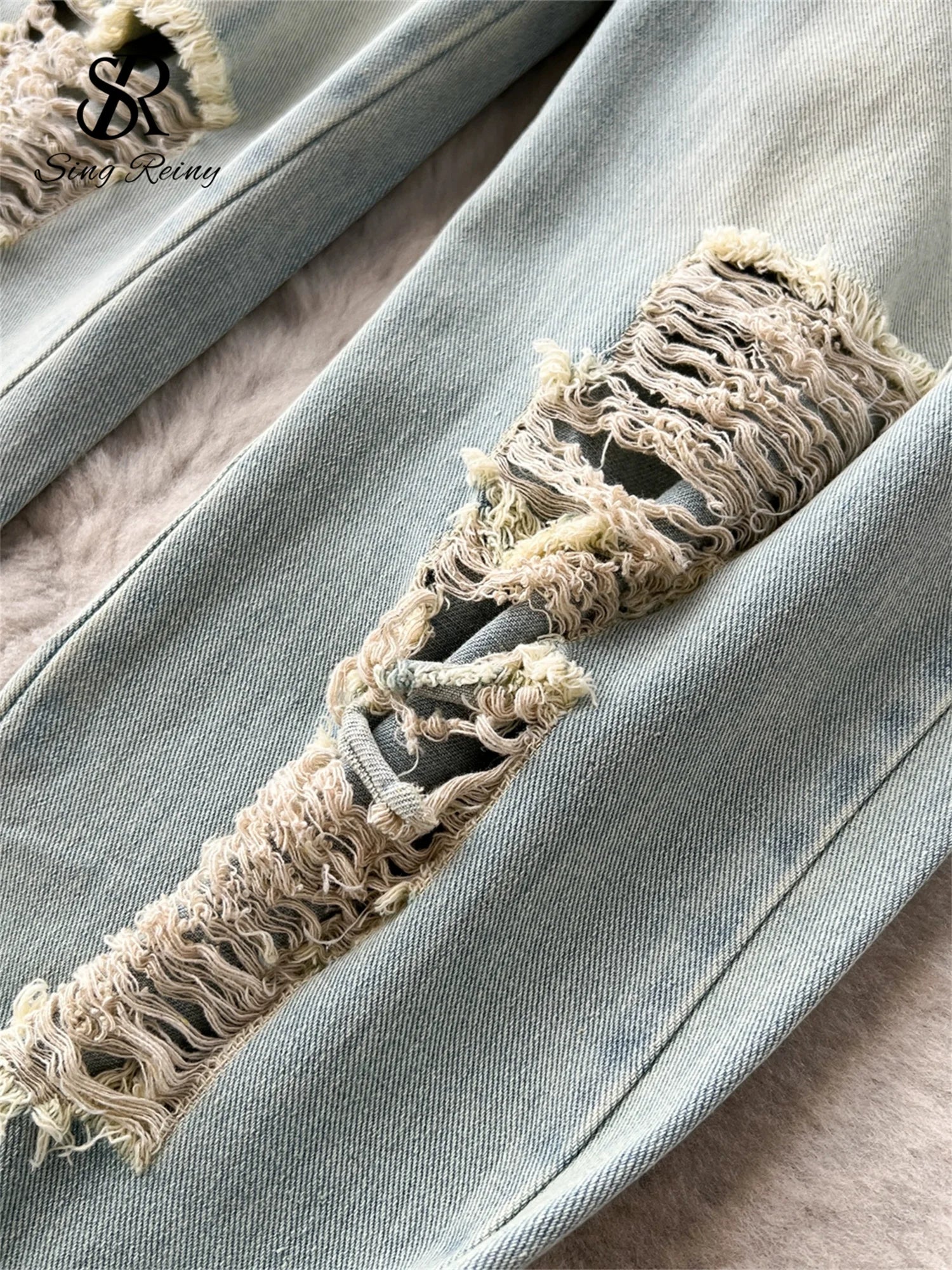 SINGREINY American Retro Streetwear Denim Jumpsuits Zipper Pocket High Waist Wide Legs Ripped Pants Summer Women Slim Rompers