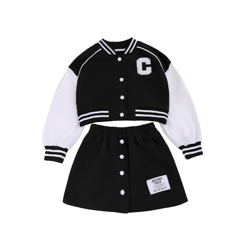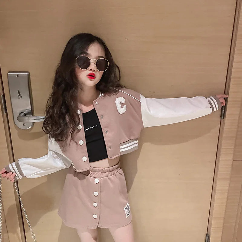 Spring Autumn Teen Girls Clothing Sets Fashion Baseball Coats + Slim Skirt 2Pcs Outfits Kids Tracksuit 5 6 7 8 9 10 11 12 13 Yrs
