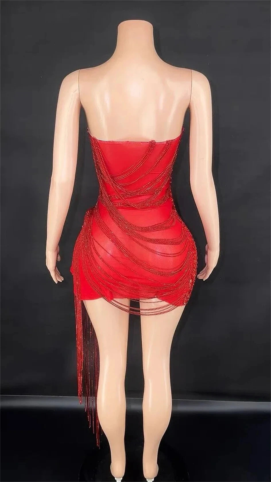 STOCK Sparkly Rhinestone Fringe Dress Women Sexy Birthday Wedding Party Prom Drag Queen Costume Outfit Stage Wear Festival