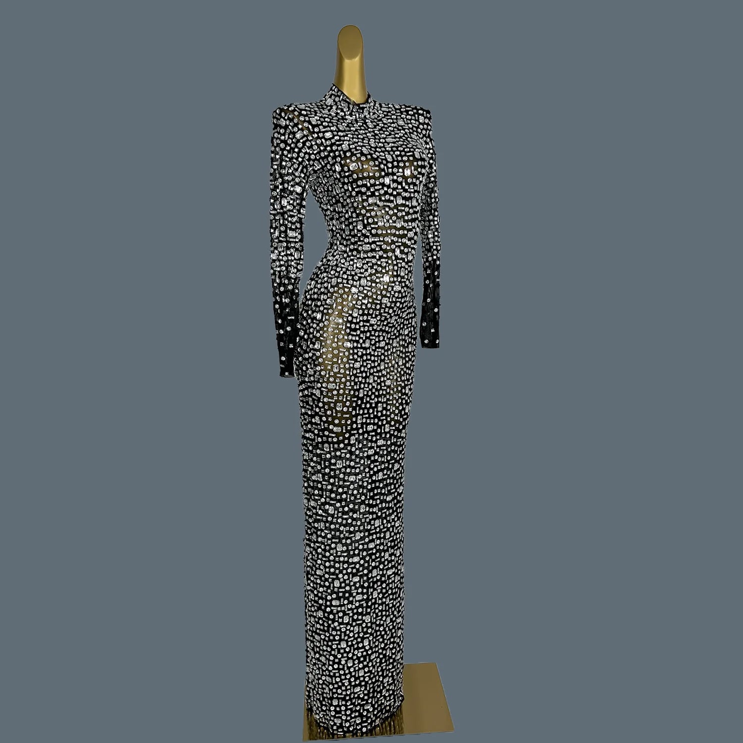 Stunning Evening Gown Long Dress Birthday Celebrate Luxurious Costume Sparkly Big Rhinestone Dancer Flashing Party Dress Gesebei