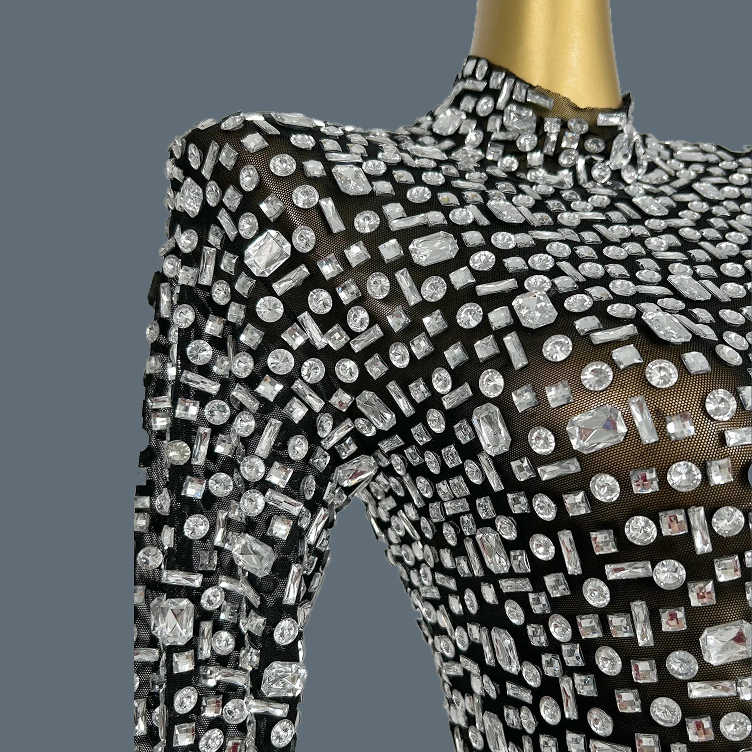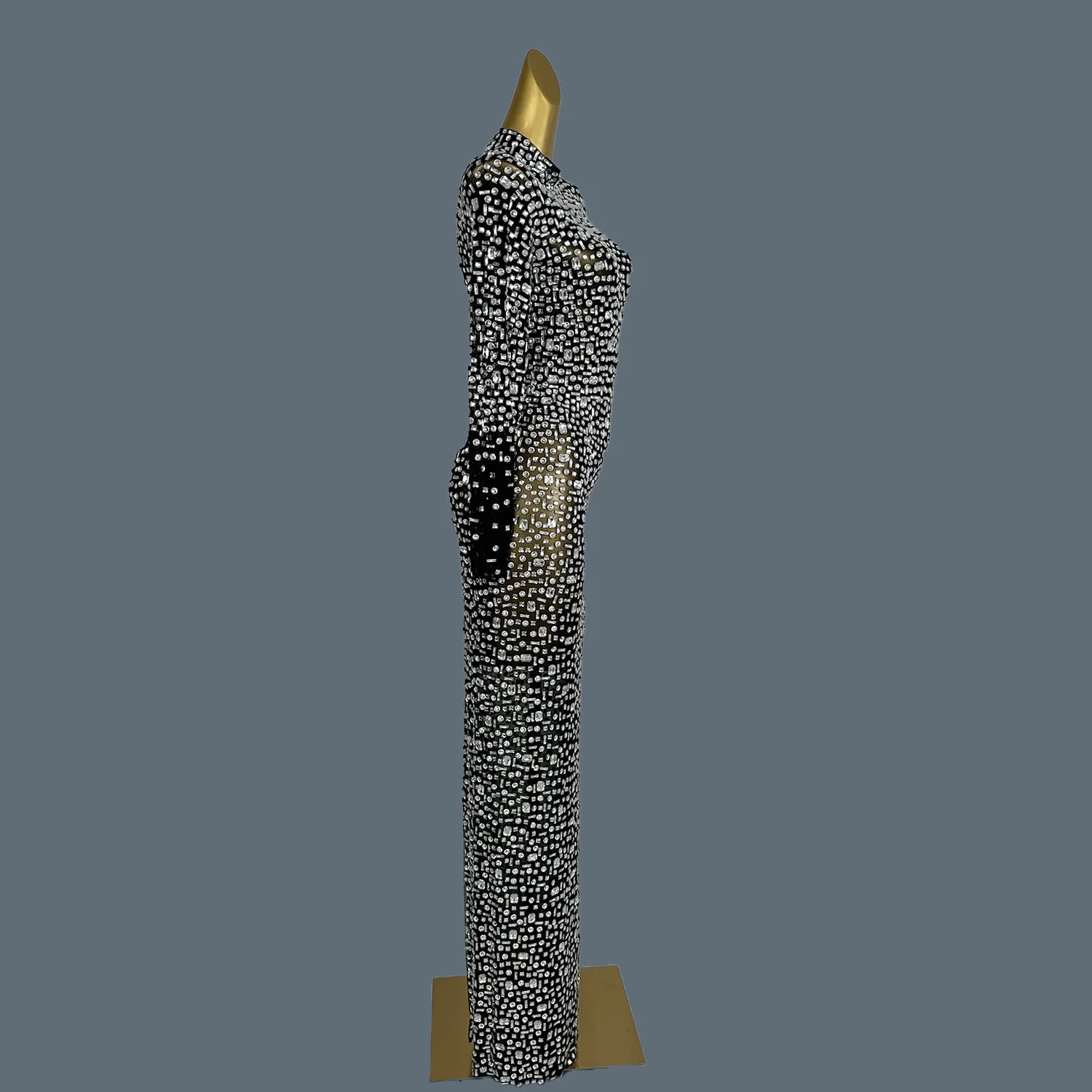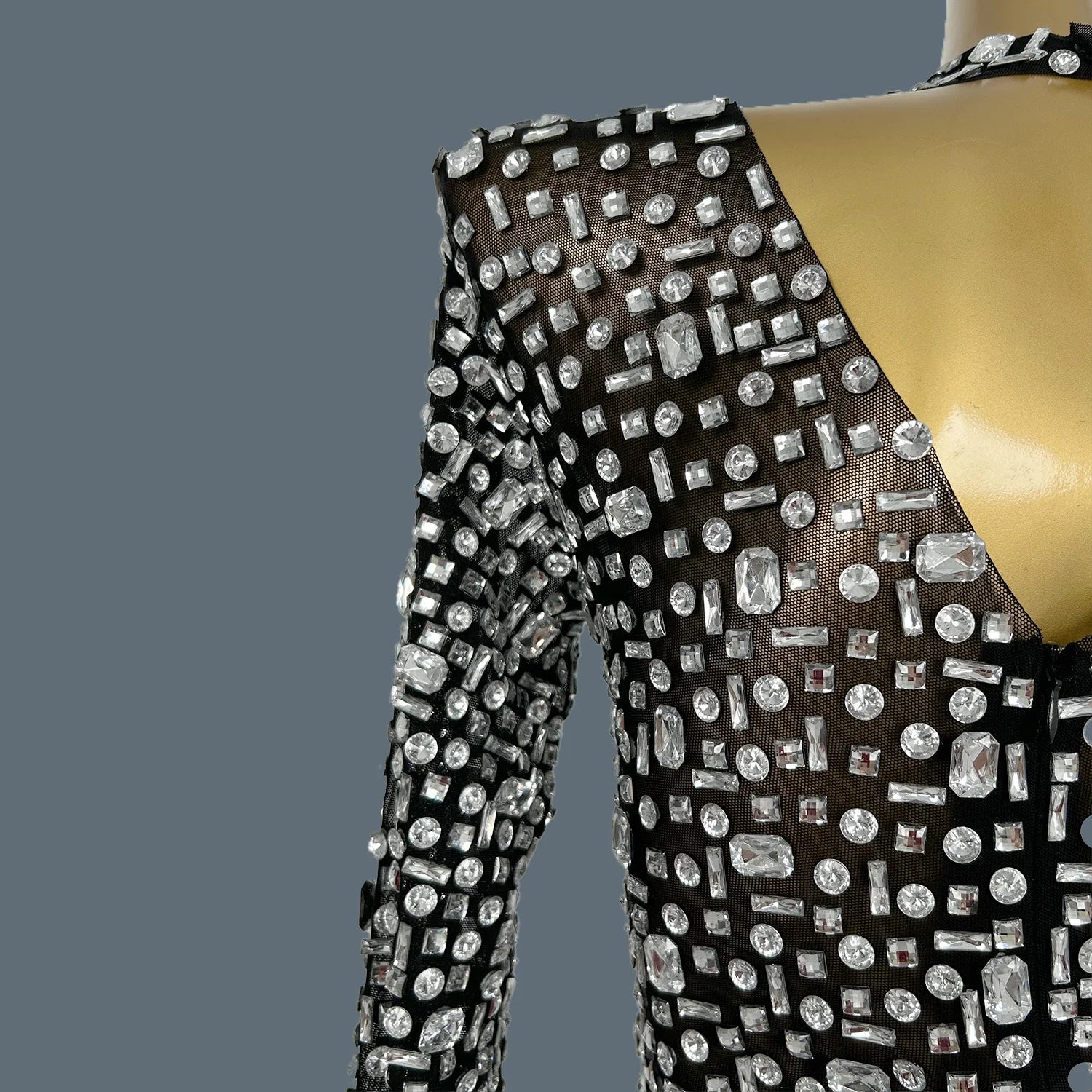 Stunning Evening Gown Long Dress Birthday Celebrate Luxurious Costume Sparkly Big Rhinestone Dancer Flashing Party Dress Gesebei