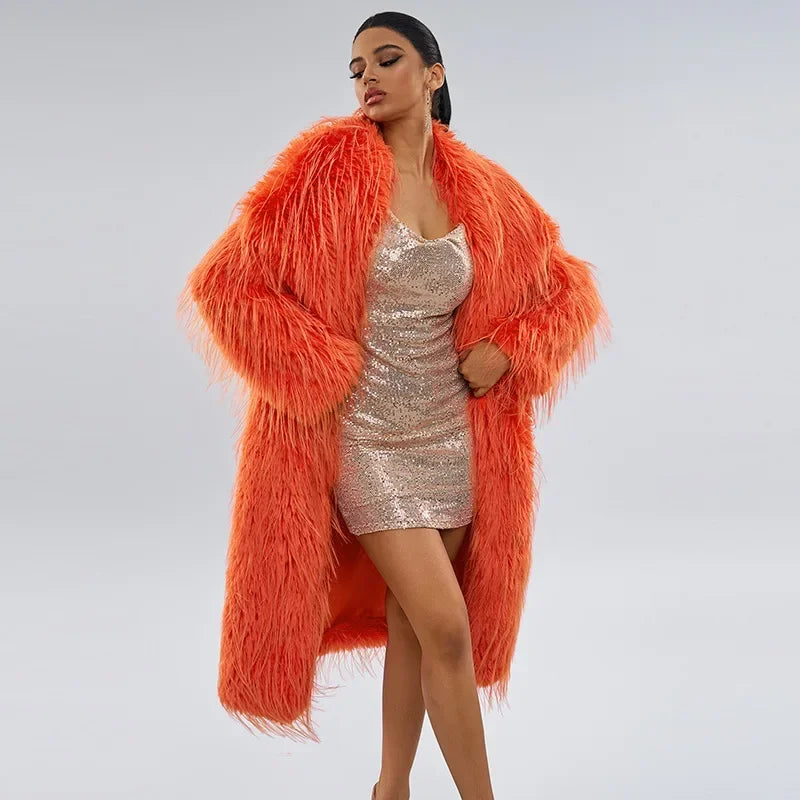 Tassel Wool Coat Extended Solid Color Imitation Fur Coat Autumn and Winter New Wool Coat for Women