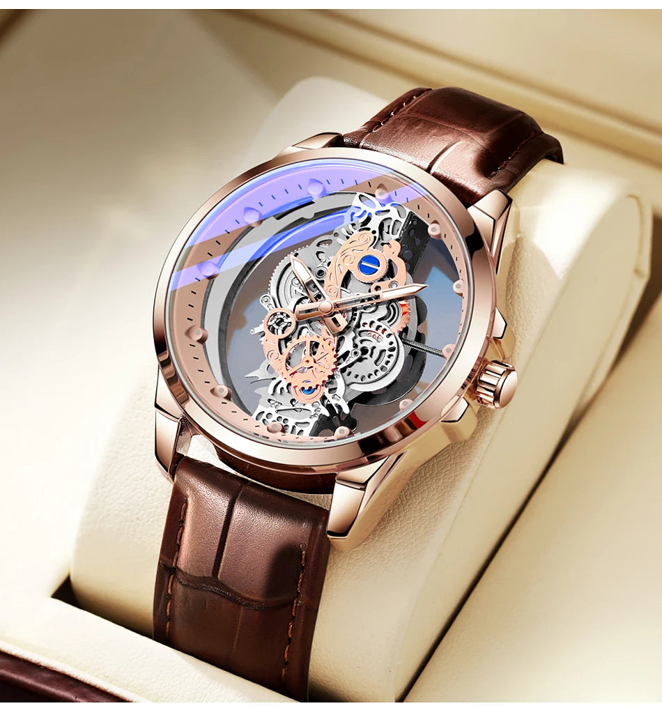TPW Hot Trendy Fashion Wholesale Men Golden Skeleton Automatic Quartz Wrist Watches Luxury 2024