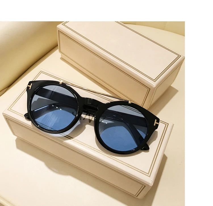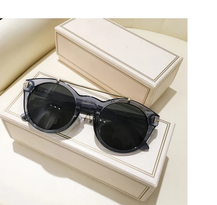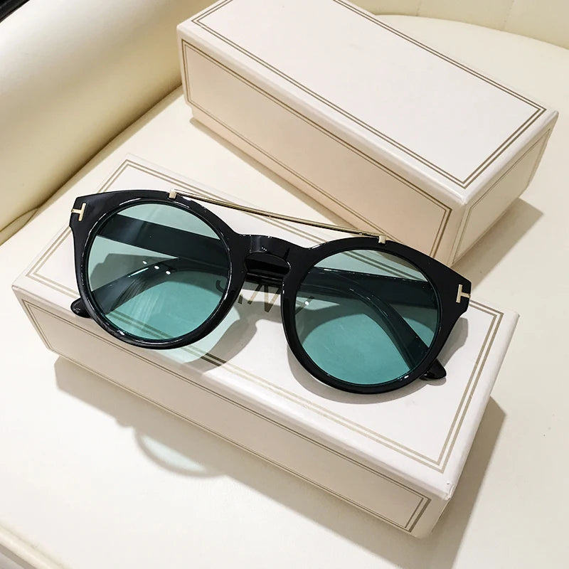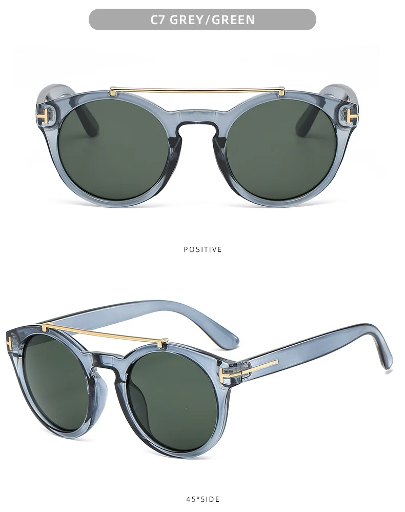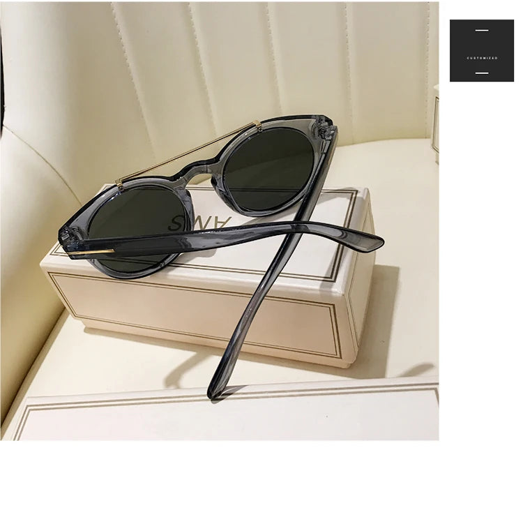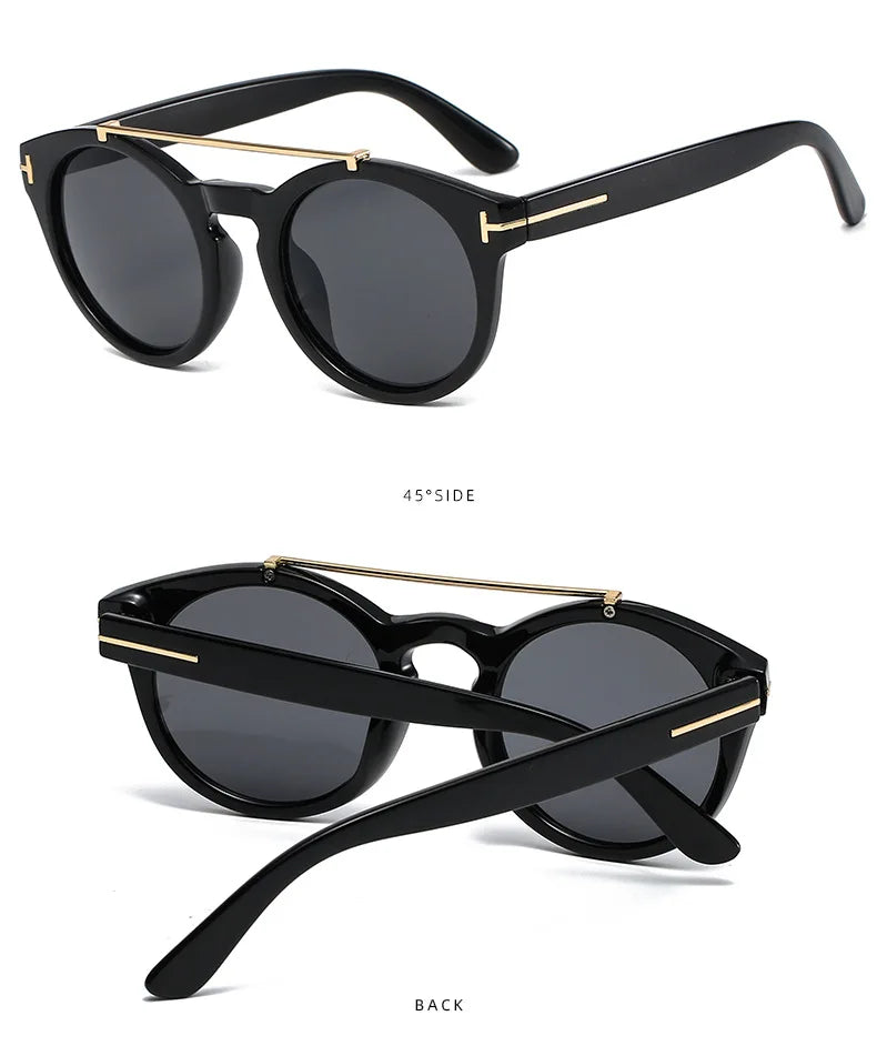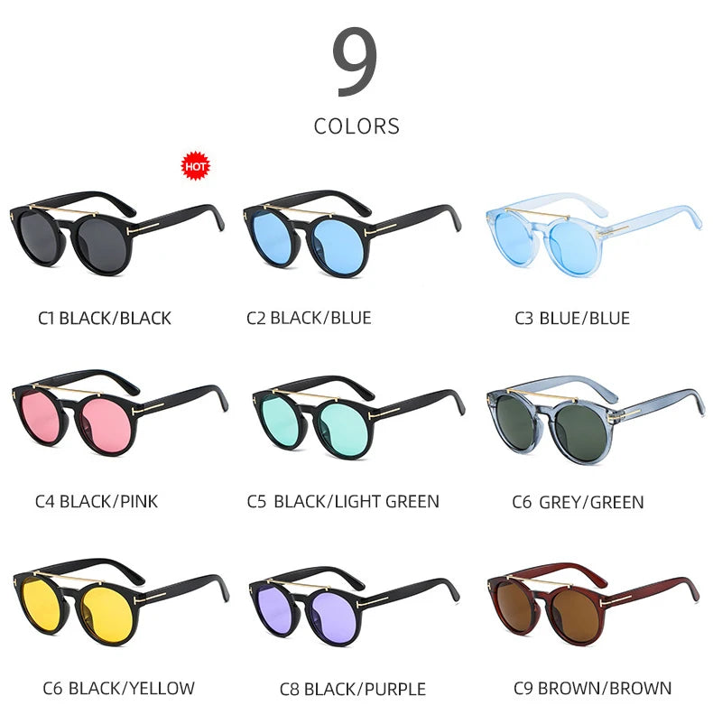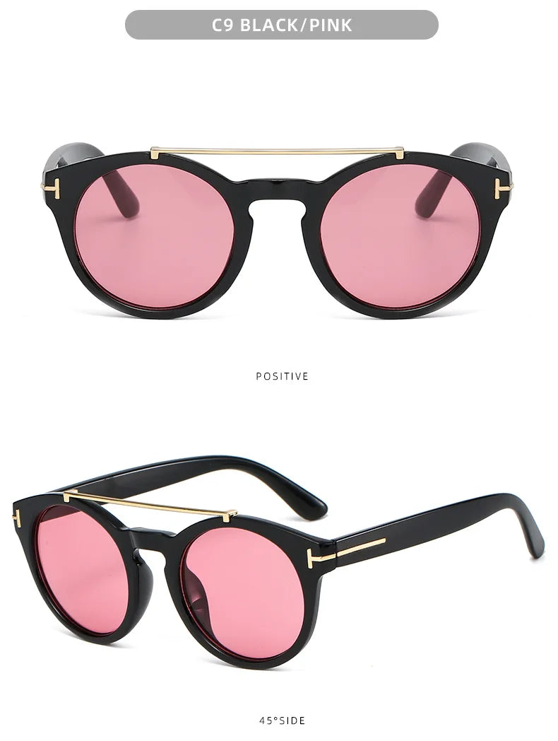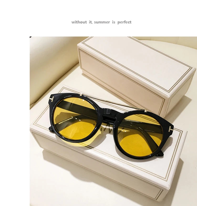 Trendy Retro Round Rivet Sunglasses Women 2025 Brand Double Bridge Shade Eyewear Colorful Lens Gray Yellow Frame Men Sun Glasses