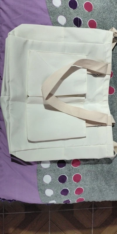 I have been using it for two weeks to go to work and it has not disappointed me, it only released the aluminum edge at the end of the wrist to close the bag but outside of that it still works (I am going to repair it with pliers). Many things fit, there I put a lunch tupper, one for yogurt, my 900ml Buffer bottle, and so on, wallet, cell phone, etc. External pockets are very useful in general, at the moment it has worked very well and very comfortable with the bag, it is very spacious even if it doesn't look like it.