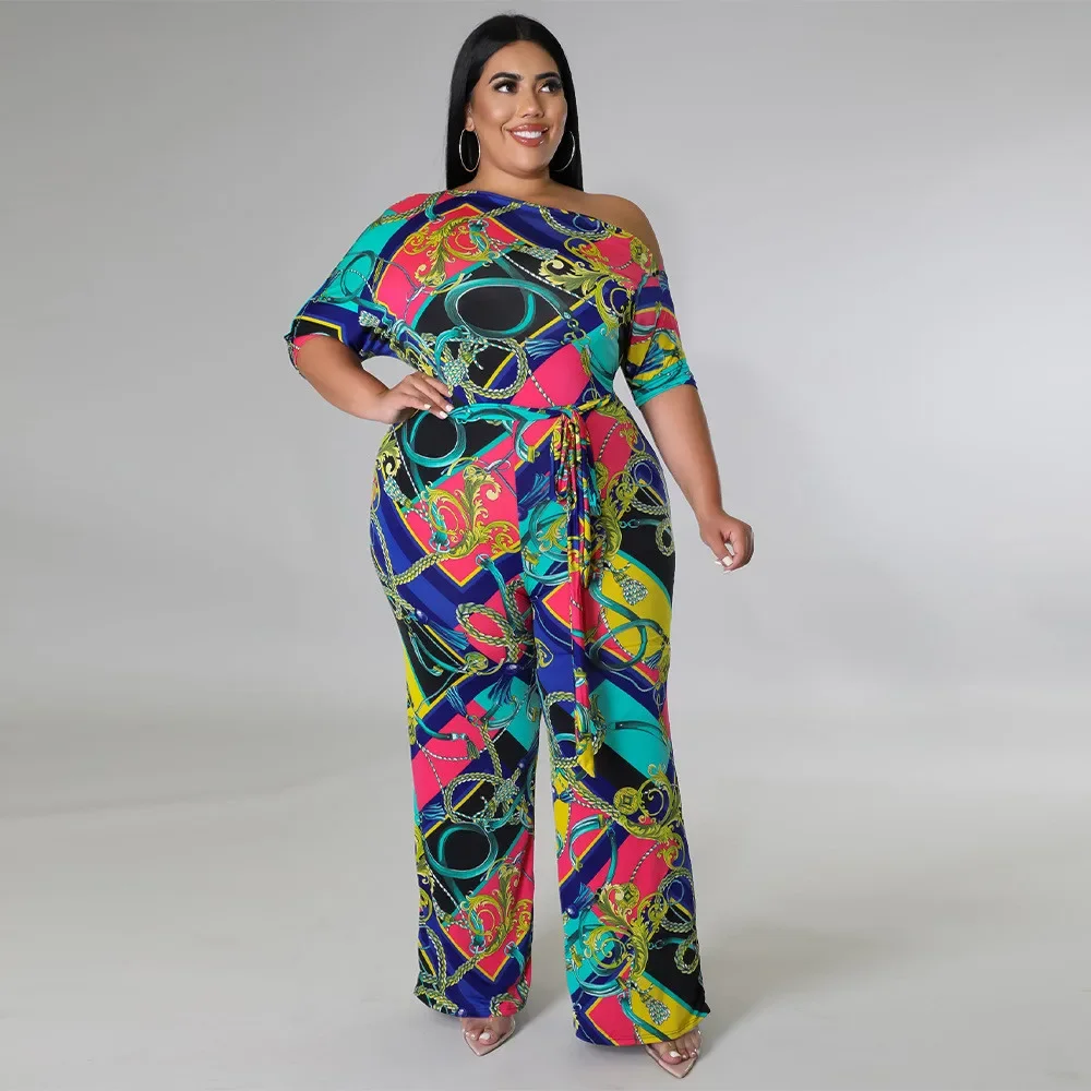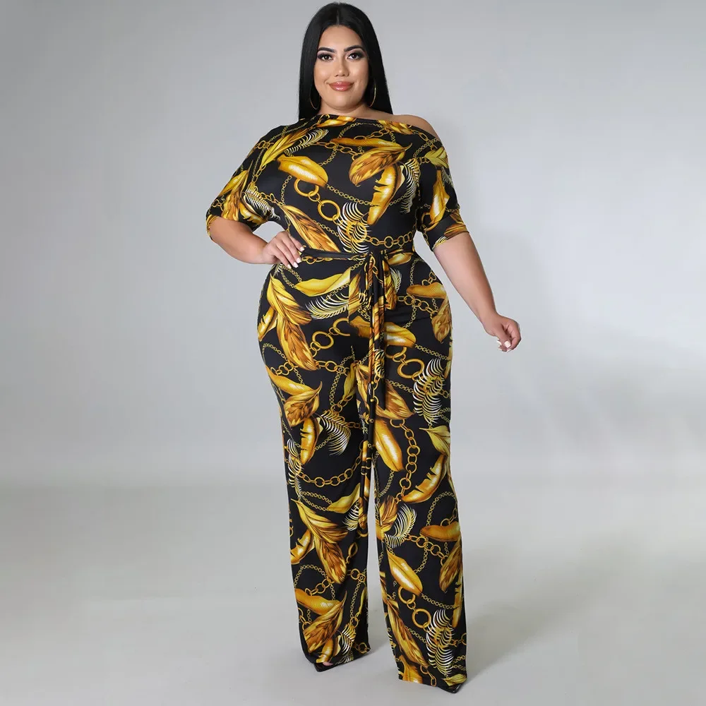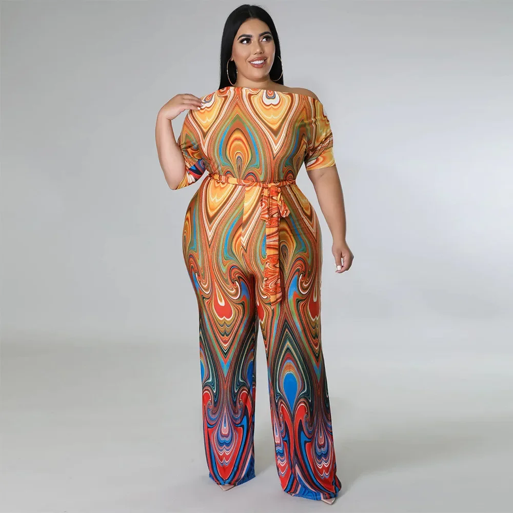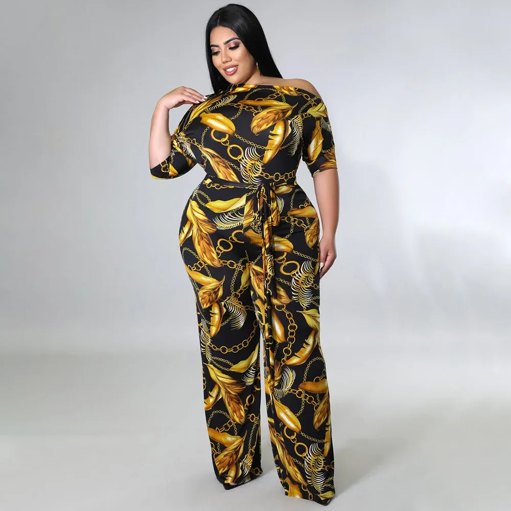 Wmstar Jumpsuit Plus Size Women Clothes Summer Printed Left Off Shoulder with Sashes Offiice Ladies Wholesale Dropshipping 2022