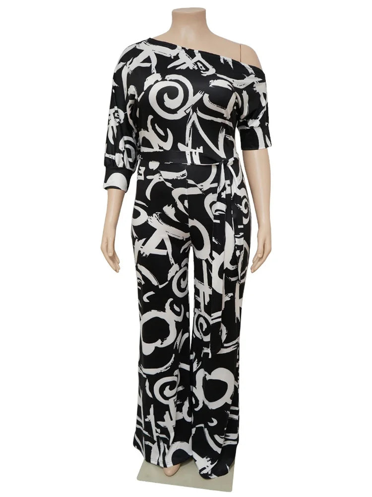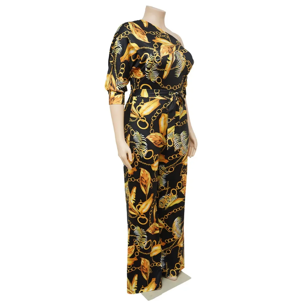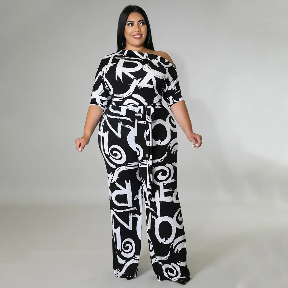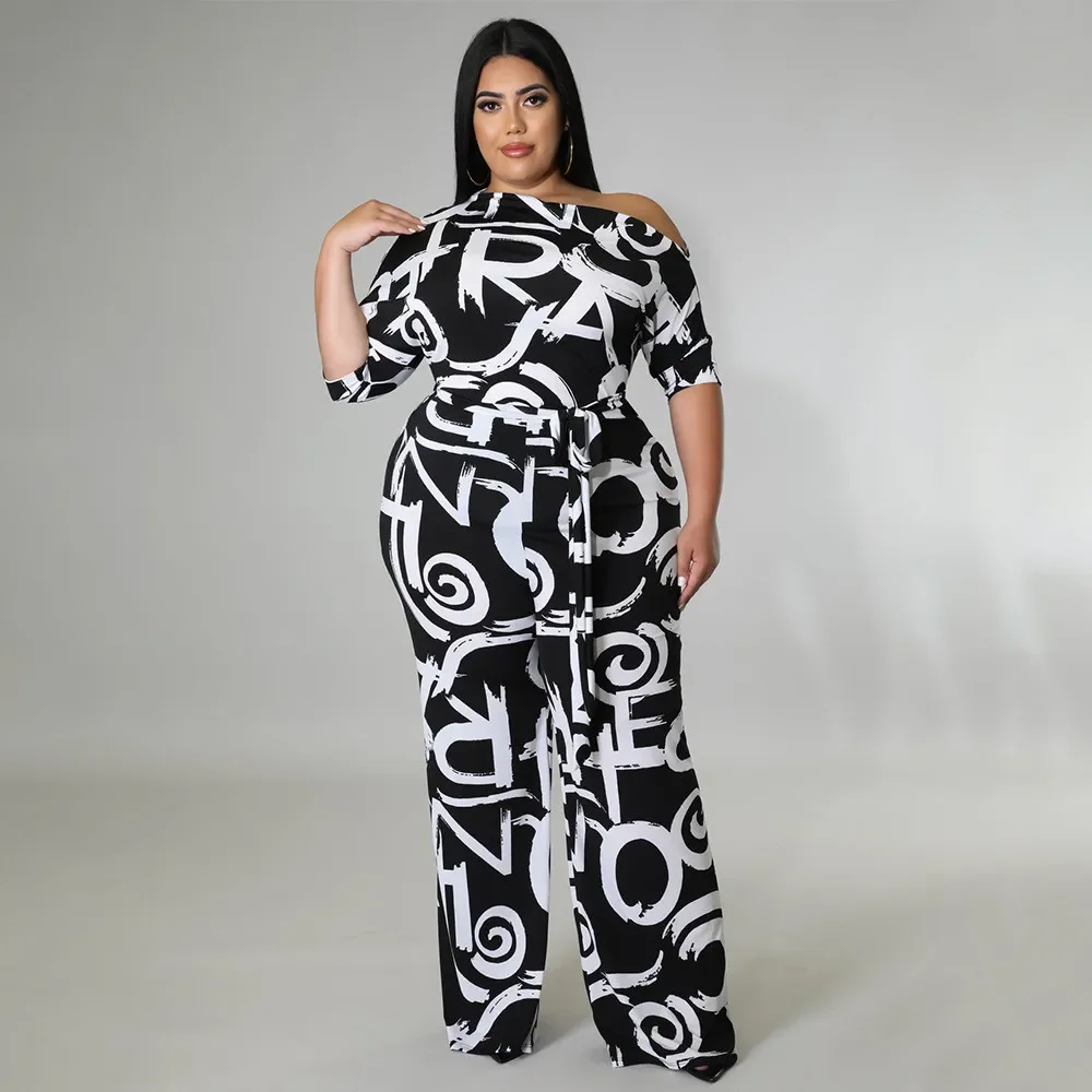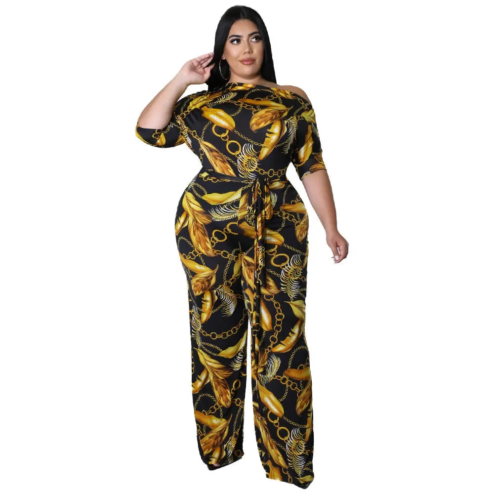 Wmstar Jumpsuit Plus Size Women Clothes Summer Printed Left Off Shoulder with Sashes Offiice Ladies Wholesale Dropshipping 2022
