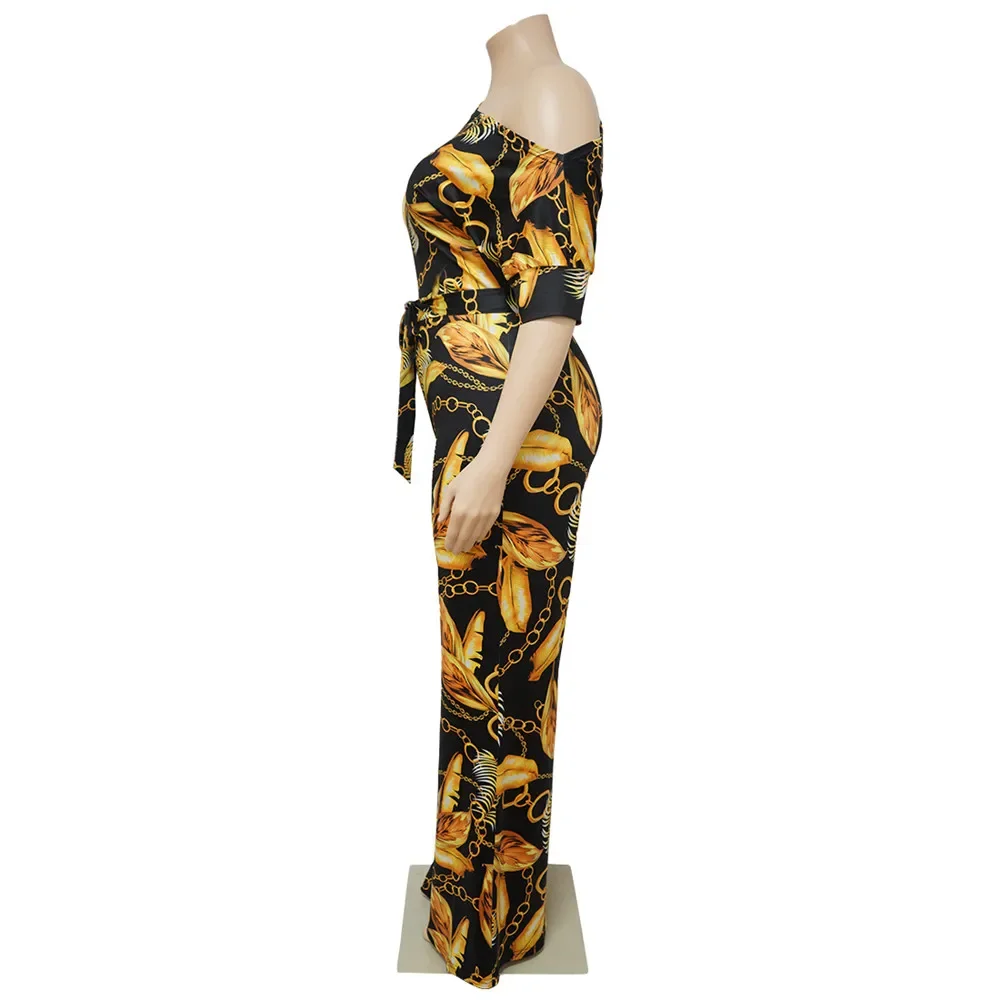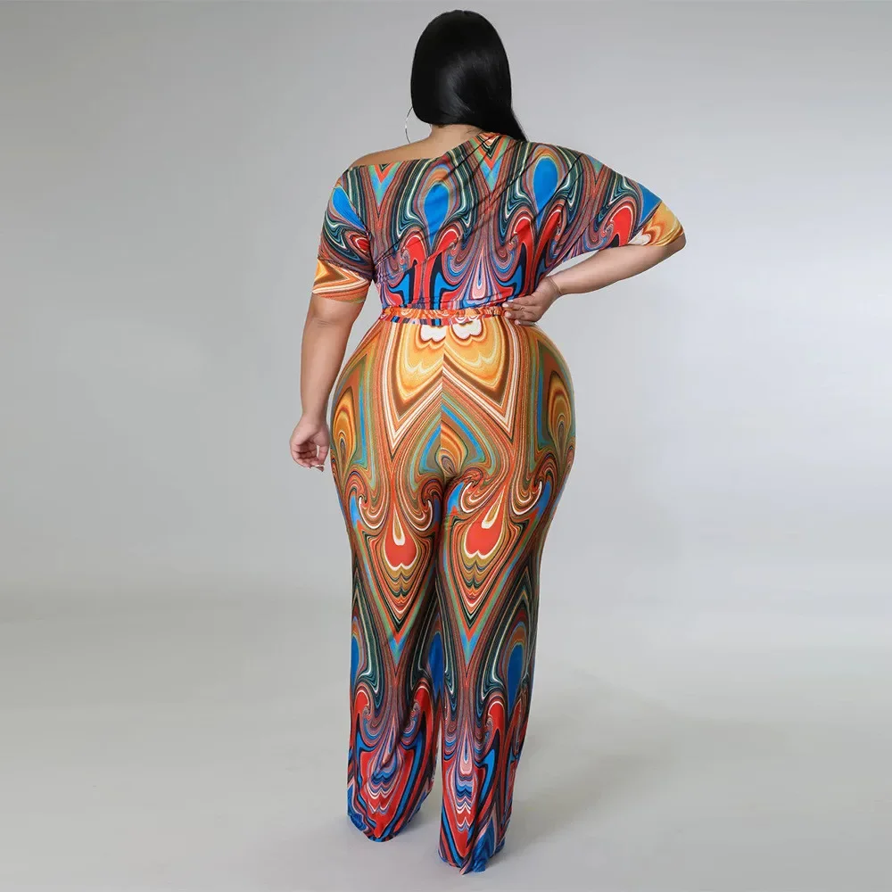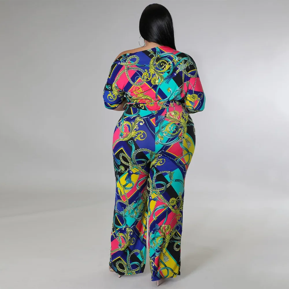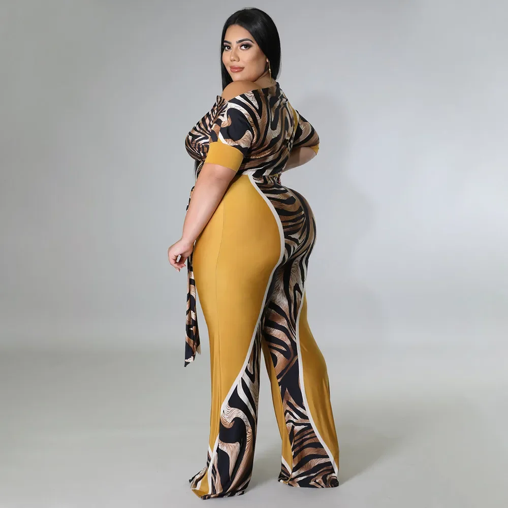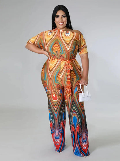 Wmstar Jumpsuit Plus Size Women Clothes Summer Printed Left Off Shoulder with Sashes Offiice Ladies Wholesale Dropshipping 2022