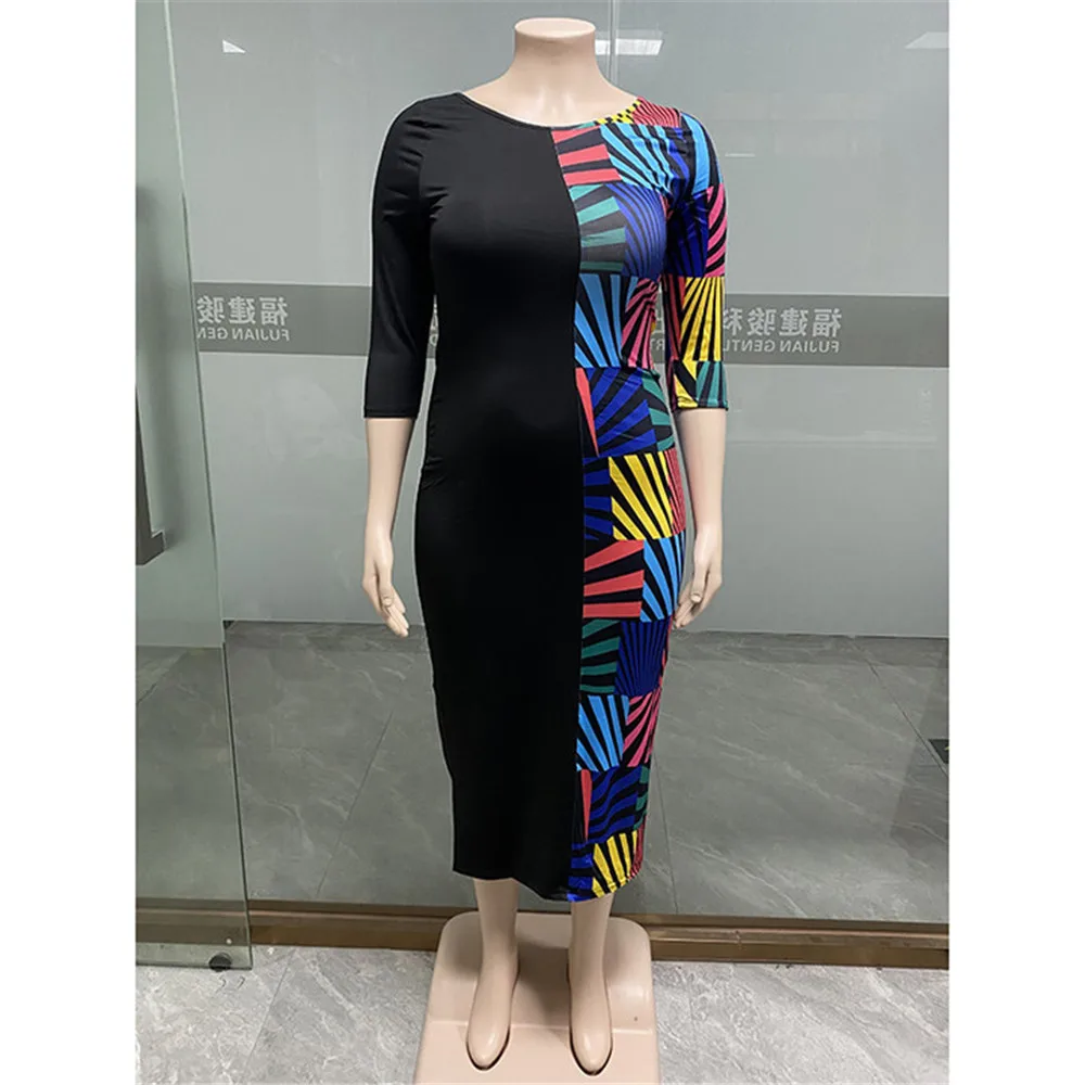 Wmstar Plus Size Dress 5xl Women Summer Clothes Patchwork Loose Casual Elegant Maxi Dress Party New StyleWholesale Dropshipping