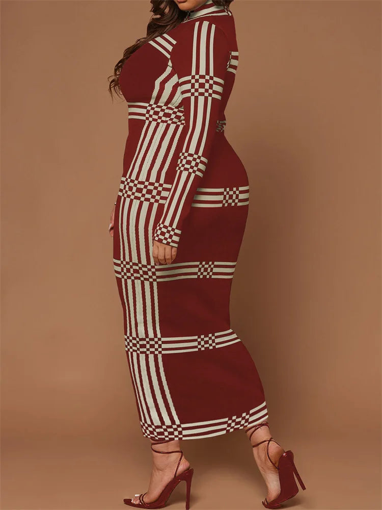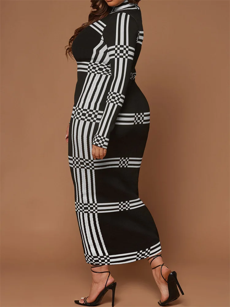 Wmstar Plus Size Dresses for Women O Neck Bodycon Stretch Striped Elegant New in Fashion Maxi Dress Wholesale Dropshipping 2024