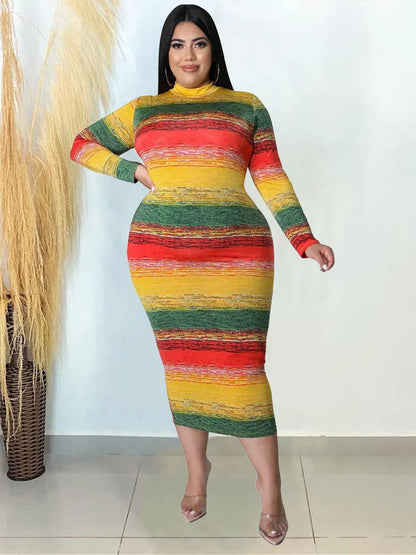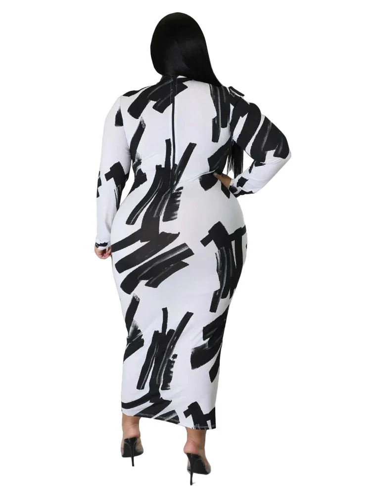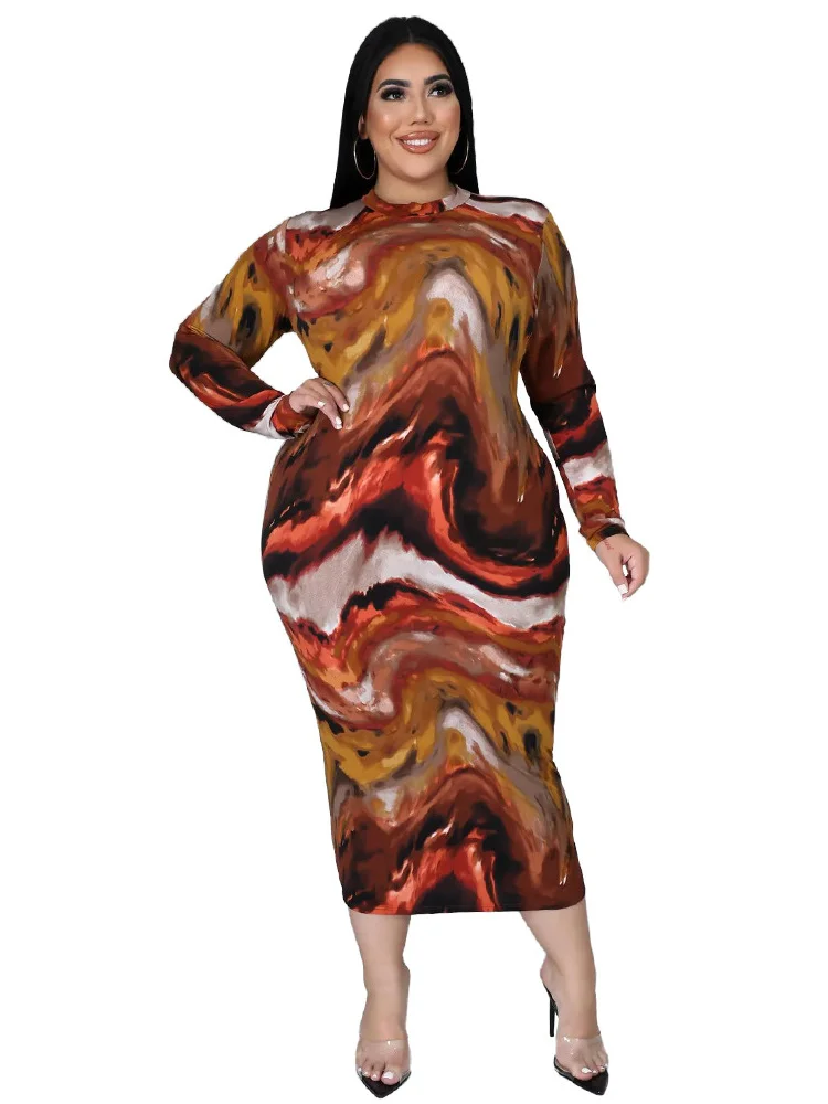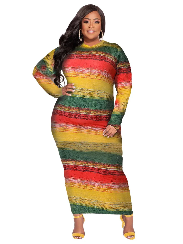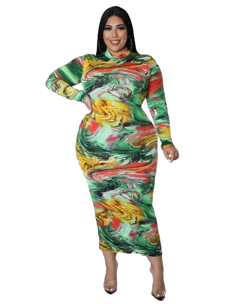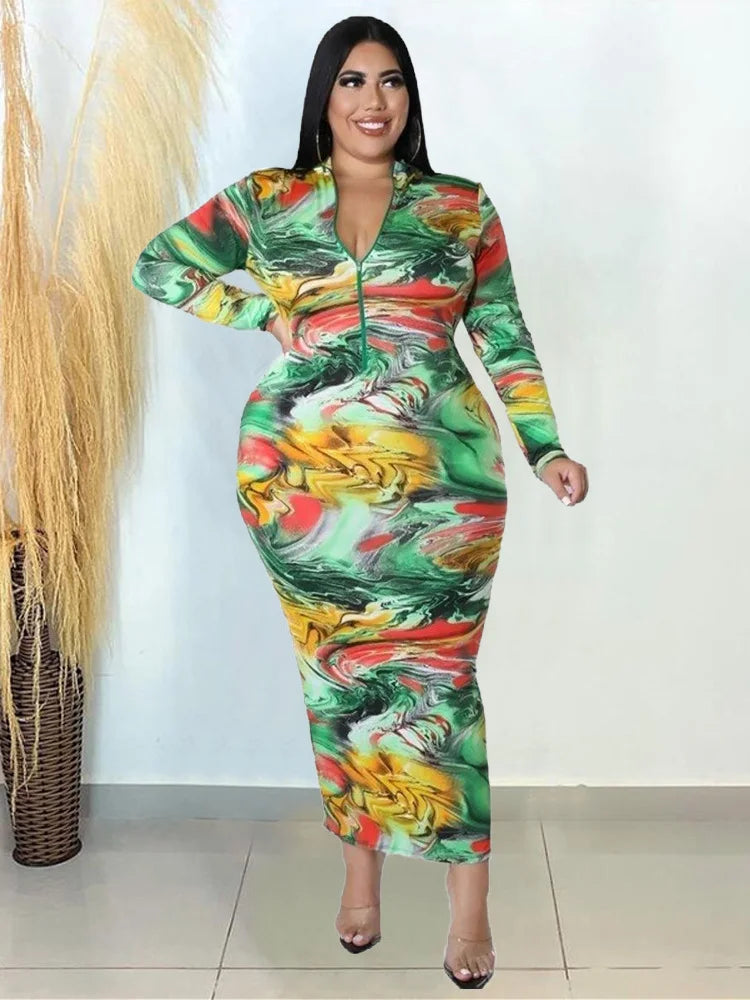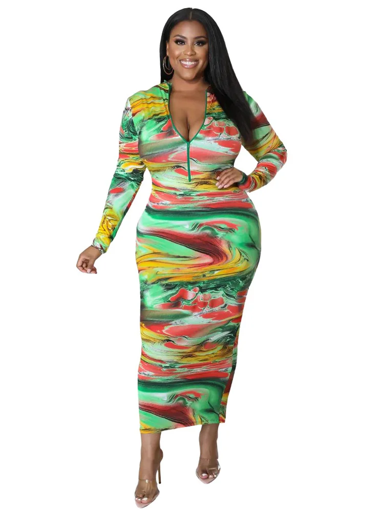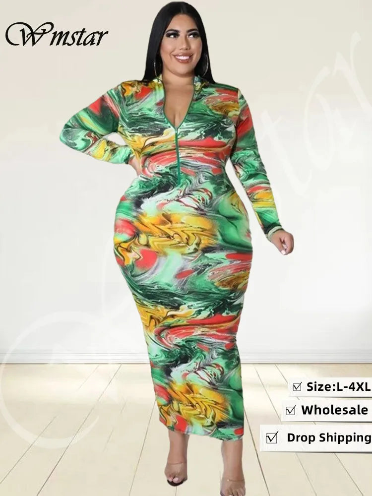 Wmstar Plus Size Dresses Tie Dye Bodycon Women Clothes Long Sleeve Zipper Back Casual Fashion Maxi Dress Wholesale Dropshipping
