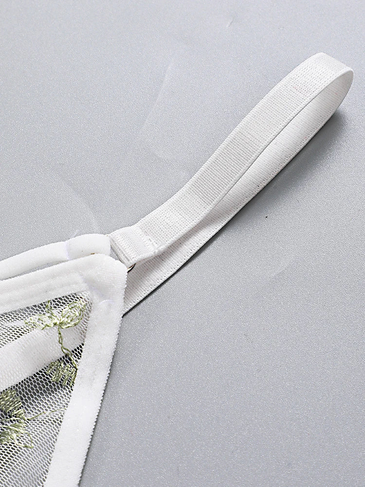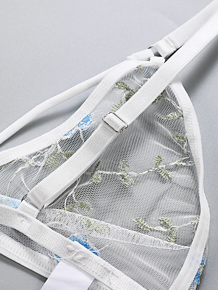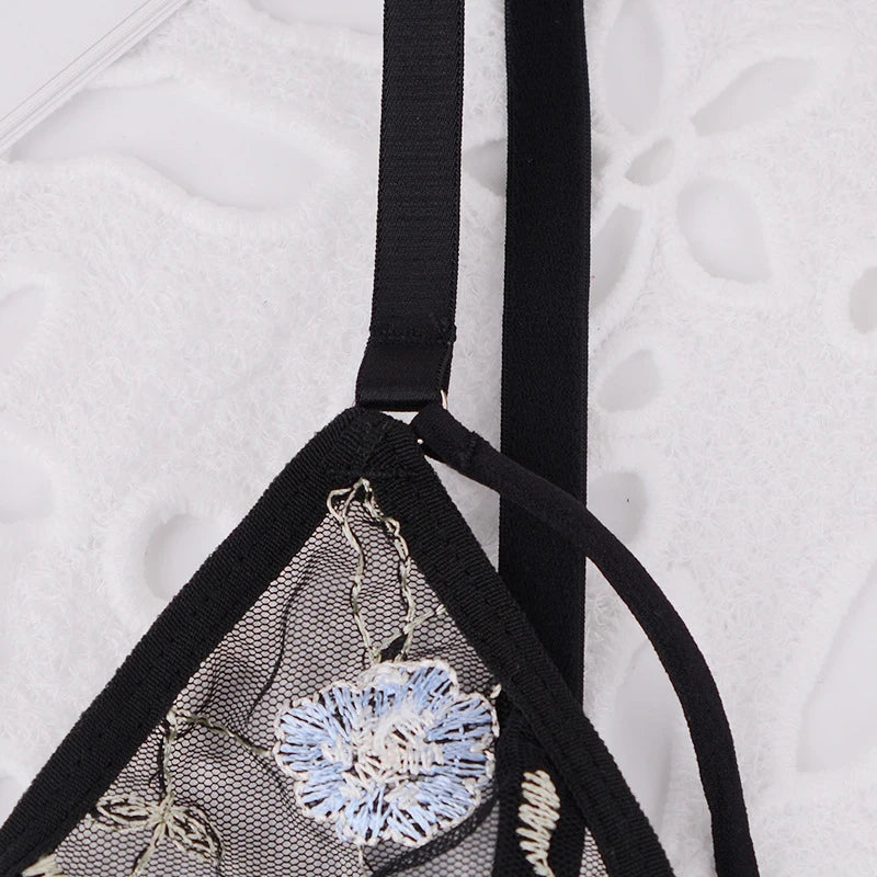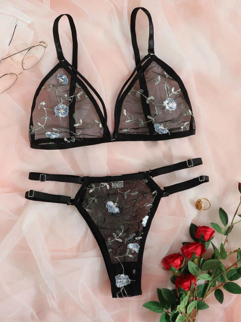 Women Lingerie Sets Underwear Embroidery Flower Lace Bra Thong Lingerie Set Thongs Mesh Translucent Ultrathin Underwear Lingerie