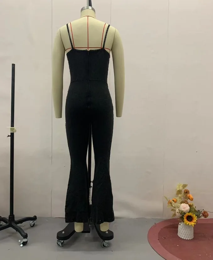 Women's Sexy Camisole Denim Jumpsuit 2025 Spring Summer Latest Solid Color Romantic Style Square Neck Slim Fit Romper Bodysuit