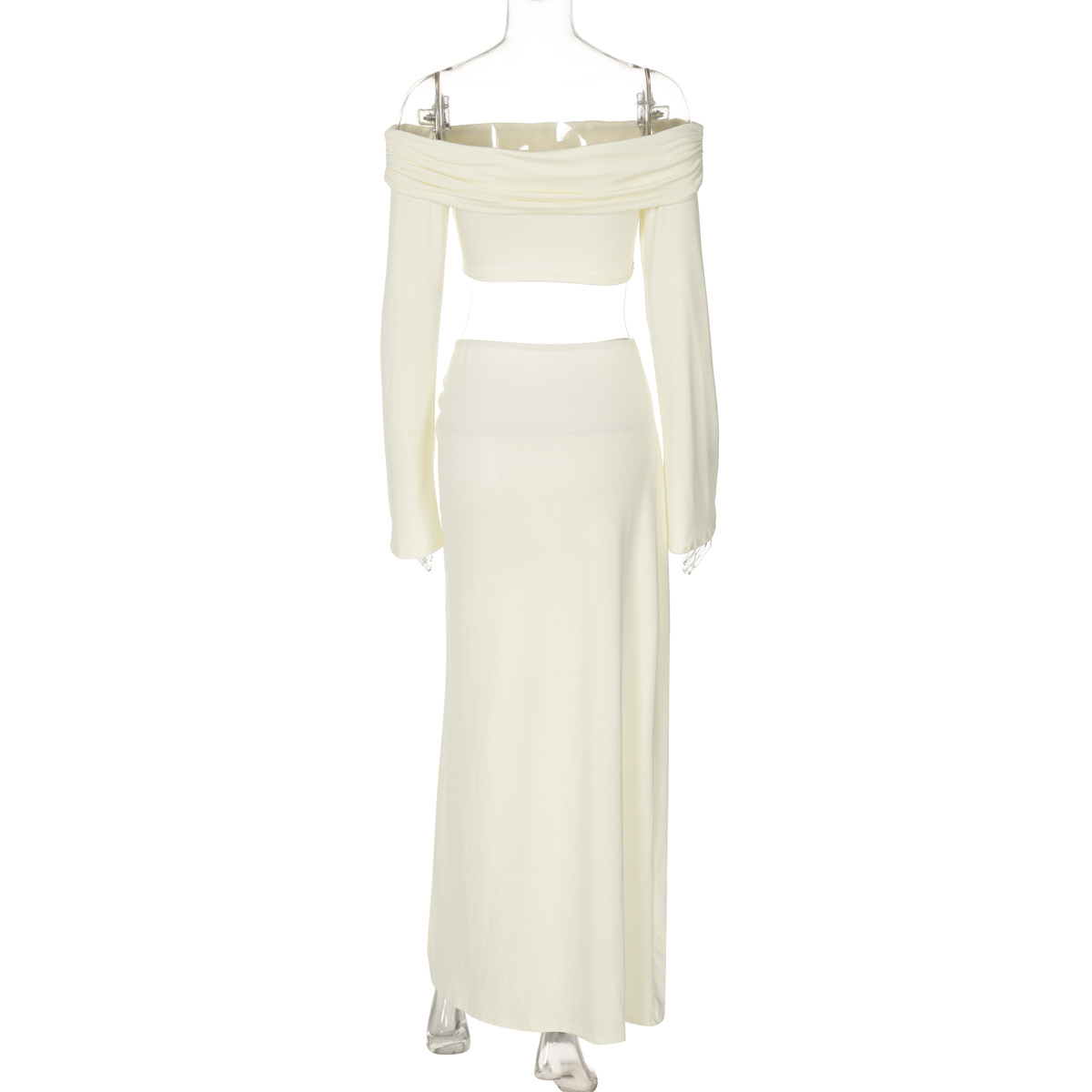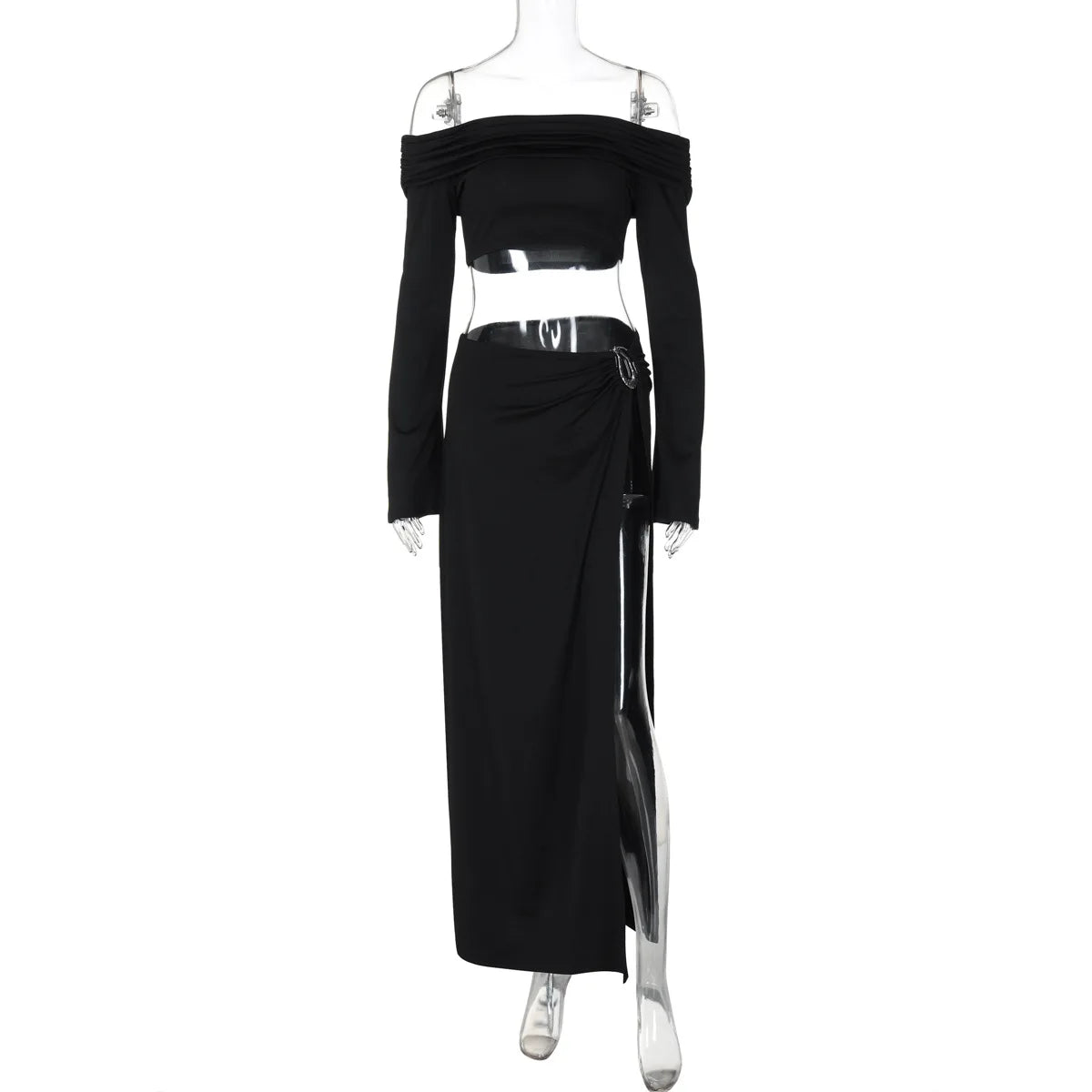 Women's Solid Beach Skirt Sets Sexy High Split Slim Bohemian Outfits Off The Shoulder Holiday Fashion 2 Piece Set 2025 Beachwear