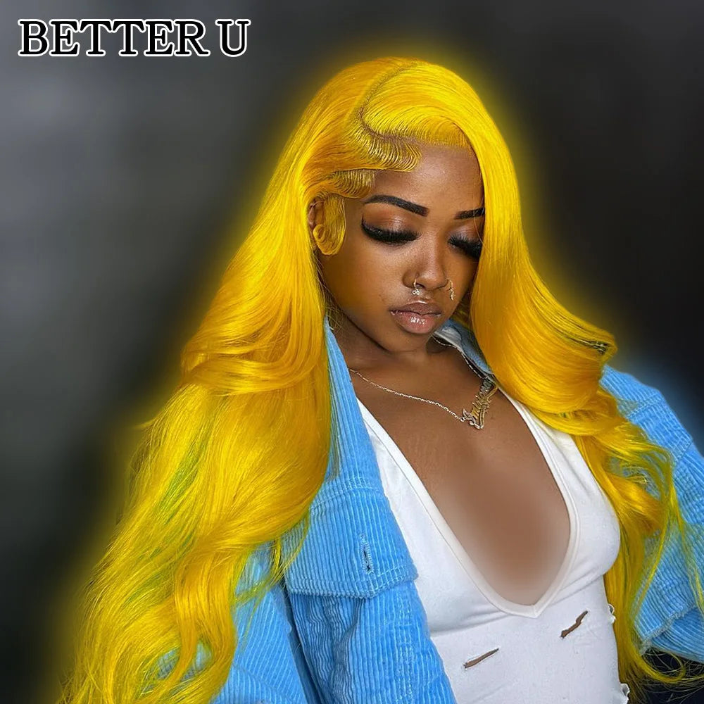 Yellow Colored Wig 13x4 Lace Front Human Hair Wigs Bright Lemon Yellow Body Wave Wig Transparent Lace Wigs For Women Human Hair